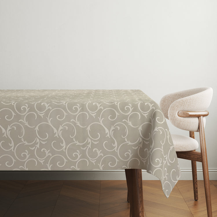 Nappe en toile cirée gaufrée KE04430 taupe clair ornements baroque carré rond ovale