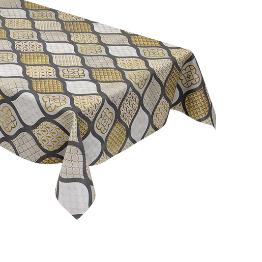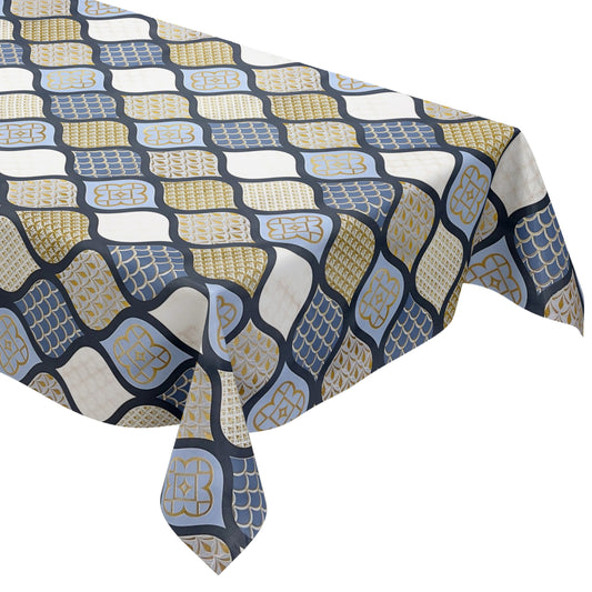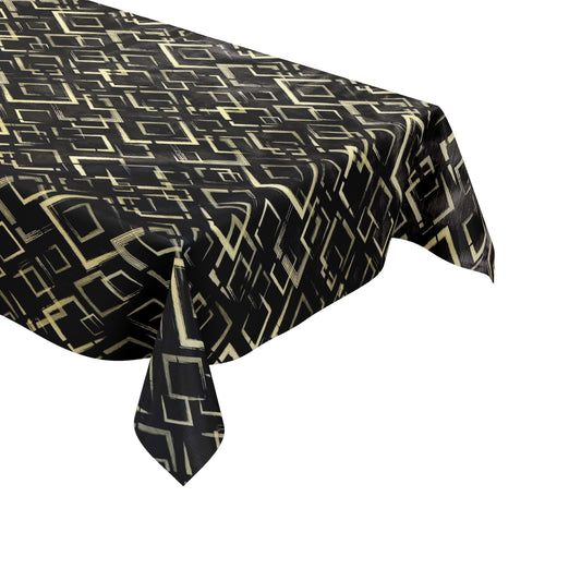 Nappe en toile cirée gaufrée 124C noir or géométrie Bauhaus carrée ronde ovale