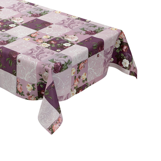 Nappe en toile cirée K227C roses violettes ornements patchwork carré rond ovale