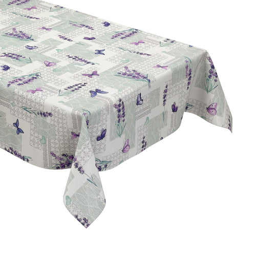 Nappe en toile cirée gaufrée P1218-1 vert lavande papillons ornements carré rond ovale