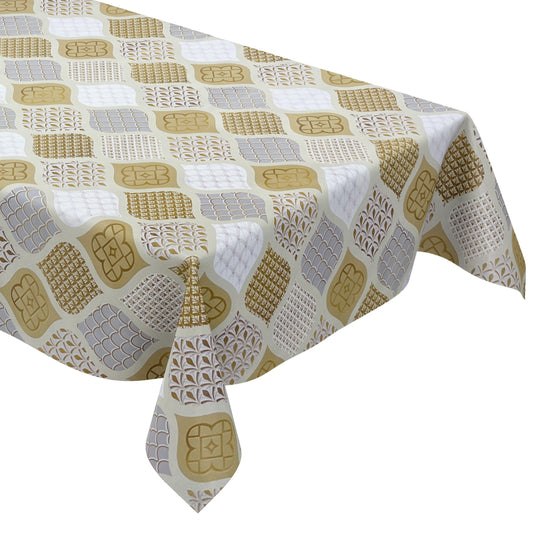 Nappe en toile cirée C141174 beige moderne lignes cercles carré rond ovale