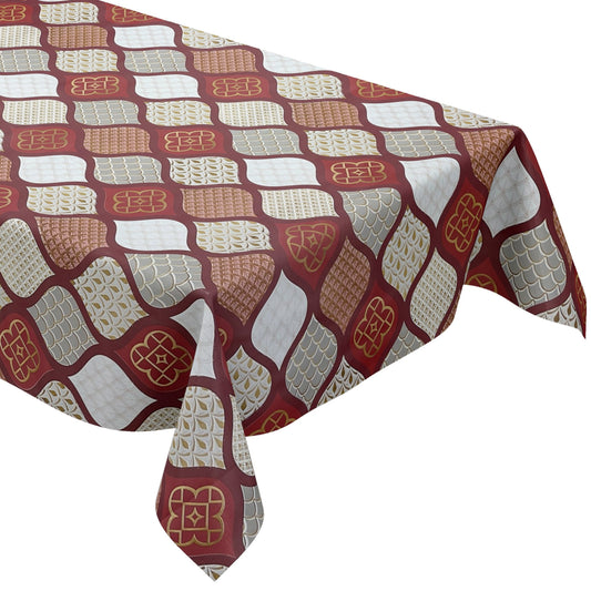 Nappe en toile cirée gaufrée Noël B6014-06 cônes or bordeaux marron carré rond ovale