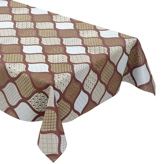 Nappe en toile cirée K104B marron taupe lignes modernes cercles carré rond ovale