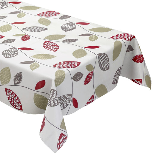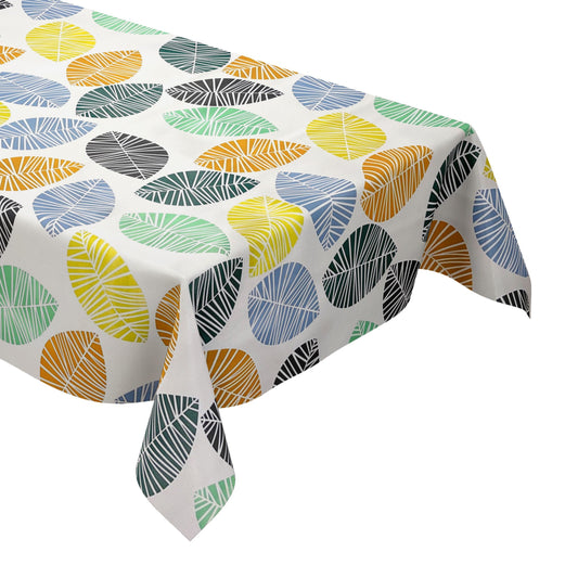 Nappe en toile cirée K150200 feuillage feuilles colorées sur blanc carré rond ovale