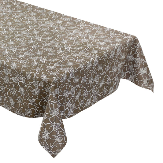 Nappe en toile cirée K150172 Lignes florales baroques marron clair carrée ronde ovale