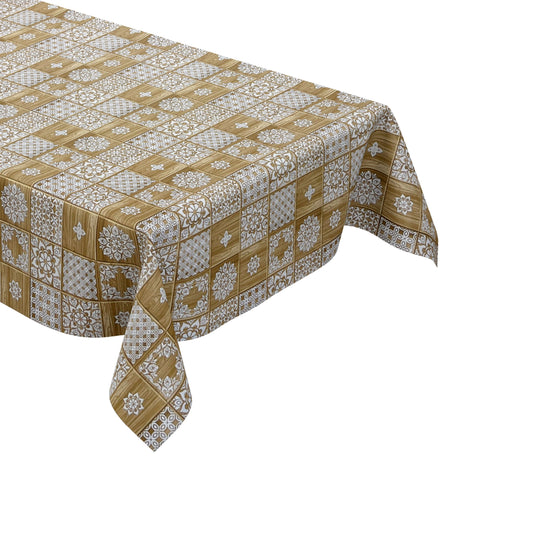 Nappe en toile cirée 36972 beige mandala cercles pissenlit carré rond ovale