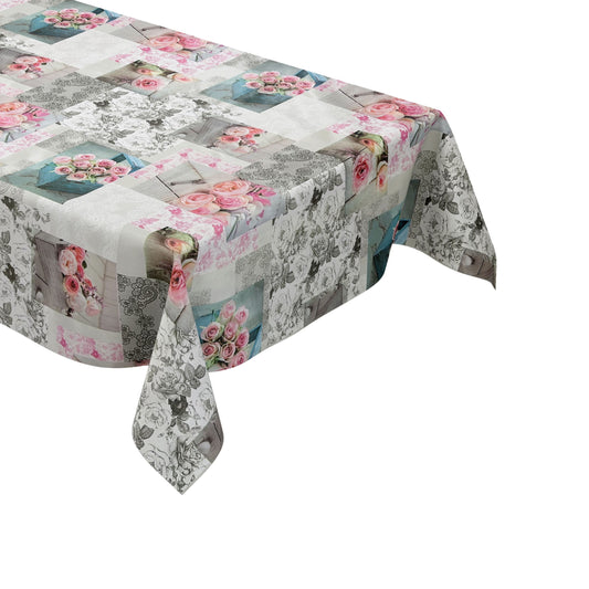 Nappe en toile cirée B9040-01 pétales de roses tricot carrée ronde ovale