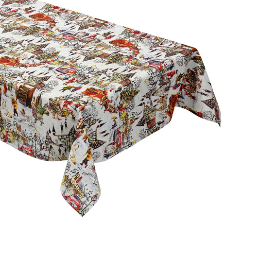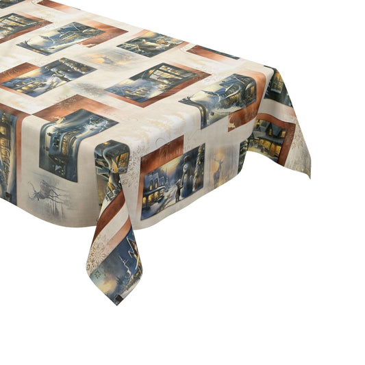 Wachstuch Tischdecke 06378-01 beige Weihnachten Advent Winterdorf eckig rund oval
