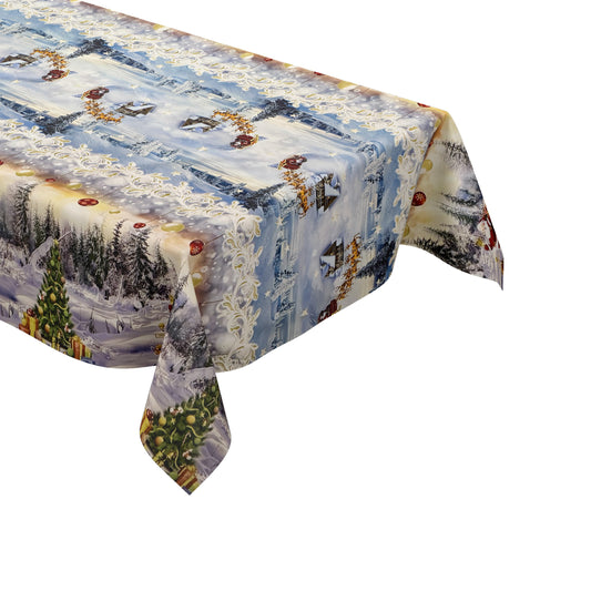 Nappe en toile cirée motif bordure 133A Paysage d'hiver de Noël Père Noël carré rond ovale