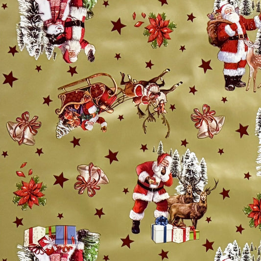 Nappe en toile cirée 137C étoiles de Noël dorées Père Noël carrée ronde ovale