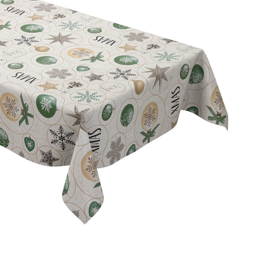 Wachstuch Tischdecke P1265-3 tannengrün Weihnachten Advent Weihnachtskugeln Schneeflocken eckig rund oval
