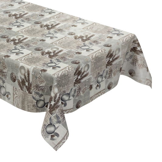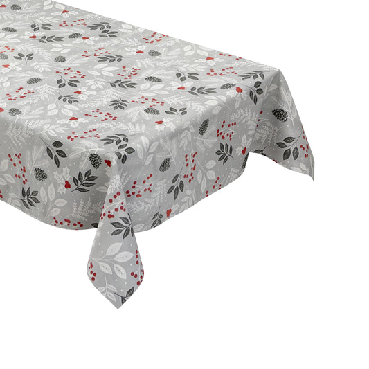 Nappe en toile cirée B3019-02 grise Noël Avent branches de sapin carrée ronde ovale