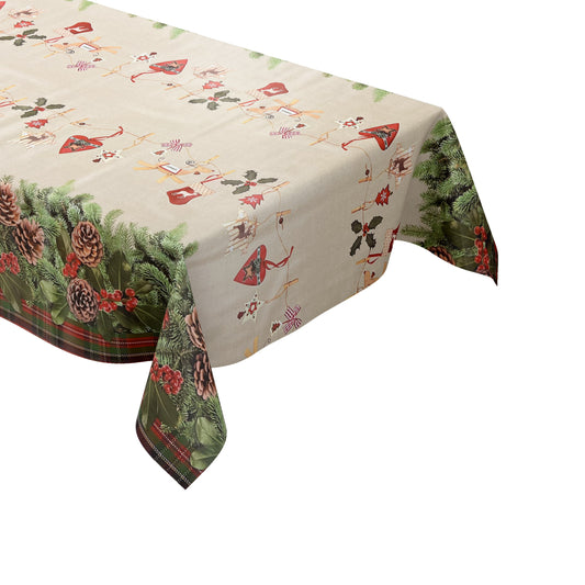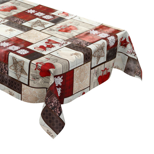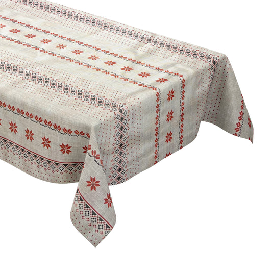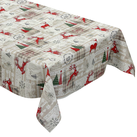 Nappe en toile cirée gaufrée Noël Scandinavie beige KE00820 carrée ronde ovale