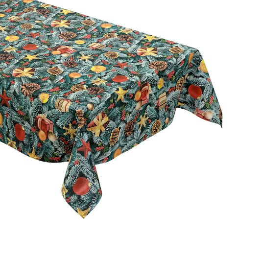 Nappe en toile cirée relief Noël B6014-03 cônes or turquoise pétrole carré rond ovale