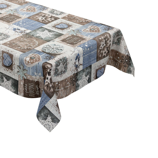 Nappe en toile cirée Noël P1031-1 coeurs en bois bleu carré rond ovale