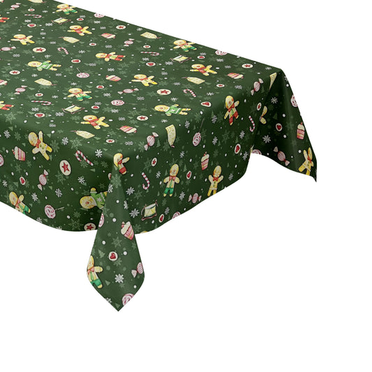 Nappe en toile cirée P1203-3 verte Noël Avent bonhomme en pain d'épices carré rond ovale