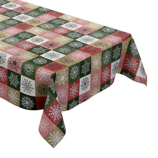 KEVKUS nappe cirée Noël 01355-05 flocons de neige carreaux rouge vert or carrée ronde ovale