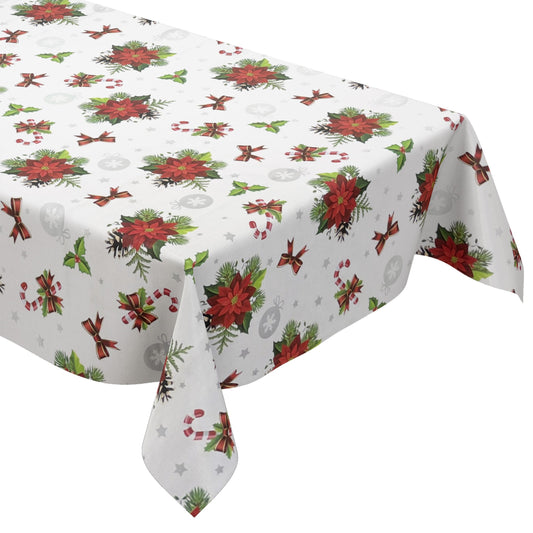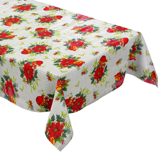 Nappe en toile cirée gaufrée Noël B6023-01 poinsettia blanc carré rond ovale
