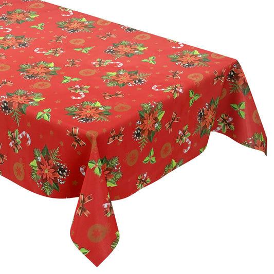 Nappe en toile cirée gaufrée Noël B6023-03 poinsettia rouge carré rond ovale