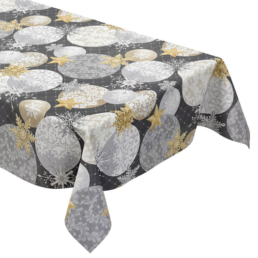 KEVKUS nappe toile cirée Noël B7000-01 étoiles dorées boules grises carrée ronde ovale