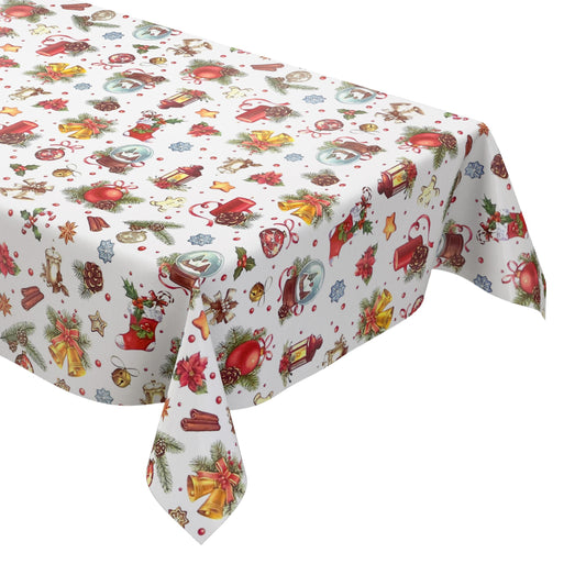 Nappe en toile cirée B5074-02 blanche Noël Avent pommes de pin carrée ronde ovale