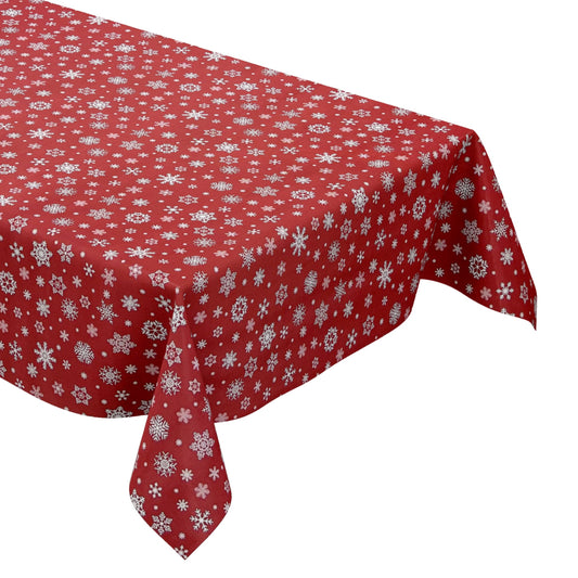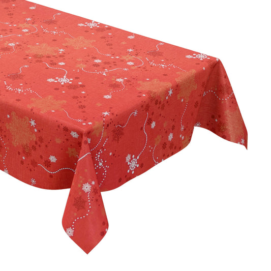 Nappe en toile cirée gaufrée Noël P1096-3 flocons de neige sur carré rouge rond ovale