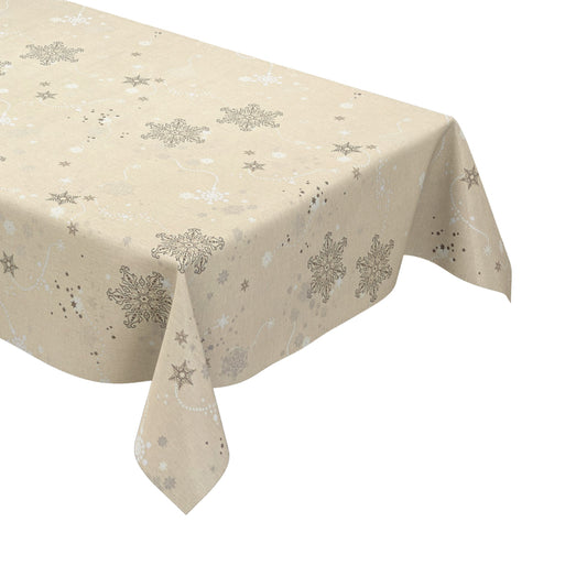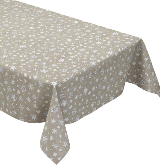 Nappe en toile cirée gaufrée Noël P1096-5 flocons de neige sur fond beige carré rond ovale