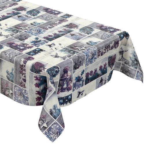 Nappe en toile cirée Noël P1032-2 violet bonhomme de neige lanterne carré rond ovale