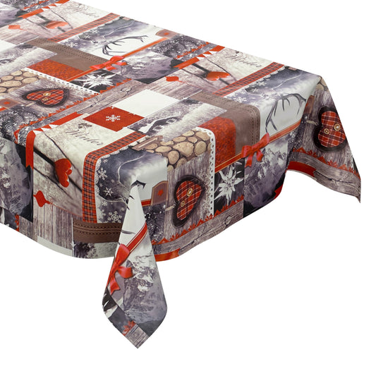 KEVKUS nappe toile cirée Noël P192-1 renne bois coeurs carrée ronde ovale