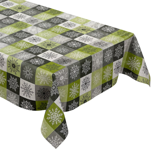KEVKUS nappe toile cirée Noël 01355-04 flocons de neige carreaux vert gris argent carrée ronde ovale