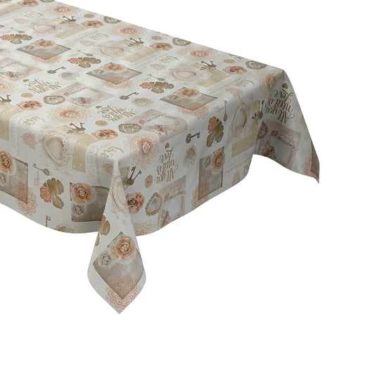 Nappe en toile cirée C142091 beige gris maison de campagne tricot LOVE carré rond ovale