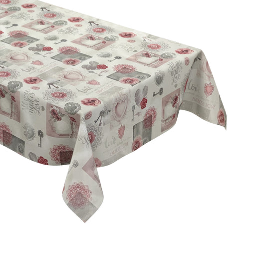 Nappe en toile cirée C146061 rose LOVE coeurs carré rond ovale vendue au mètre