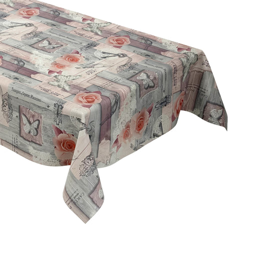 Nappe en toile cirée gaufrée B1794-05 gris chiné coeurs amour maison de campagne carré rond ovale