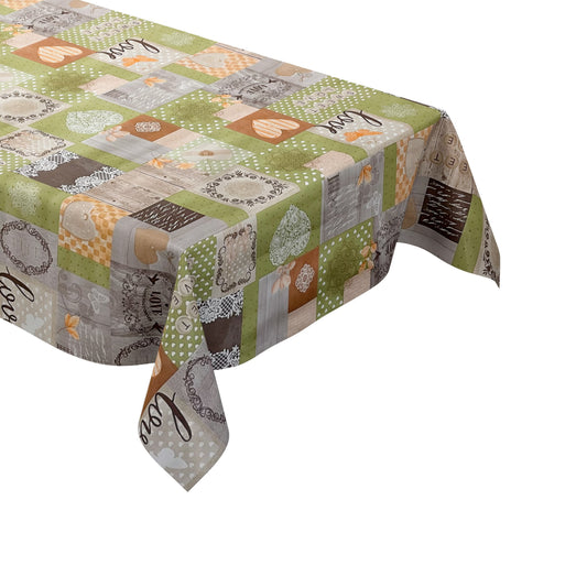 Nappe en toile cirée B1804-01 maison de campagne coeurs carreaux beige carrée ronde ovale