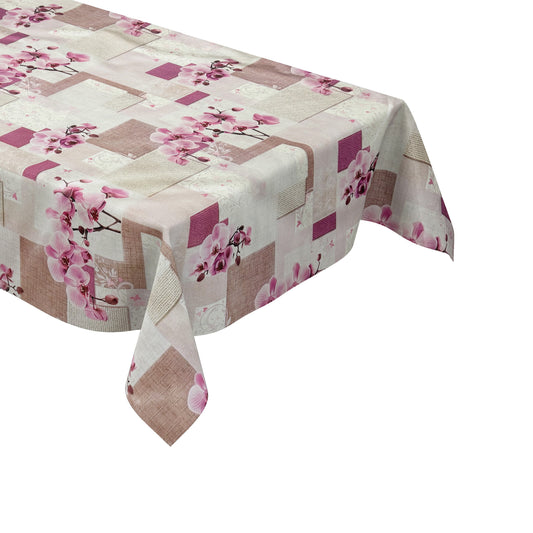 Nappe en toile cirée 160A orchidées fleurs patchwork floral carré rond ovale