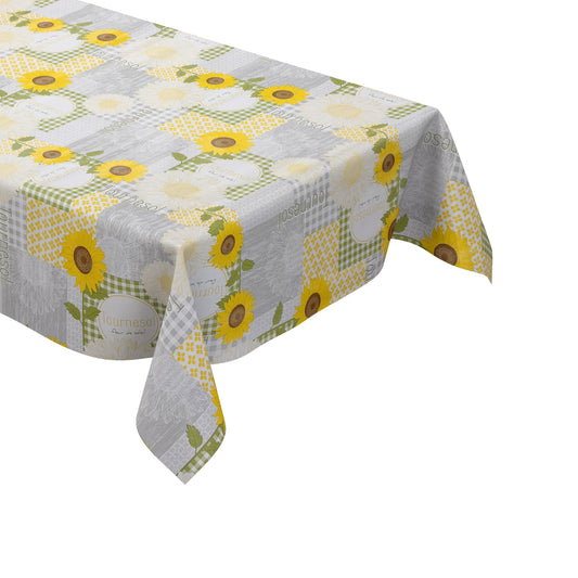 Nappe en toile cirée EE80 tournesols bois carreaux vert carré rond ovale