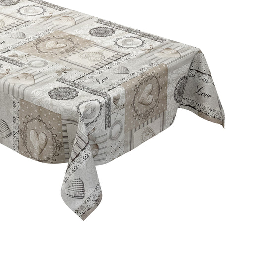 Nappe en toile cirée C142091 beige gris maison de campagne tricot LOVE carré rond ovale