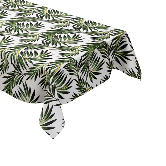 Nappe en toile cirée gaufrée B4020-02 vert or palmiers monstera jungle carré rond ovale