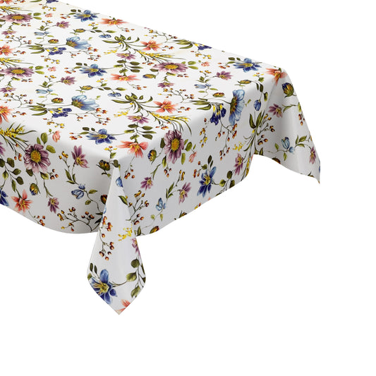 Nappe en toile cirée gaufrée B4055-01 prairie fleurie mer de fleurs carrée ronde ovale