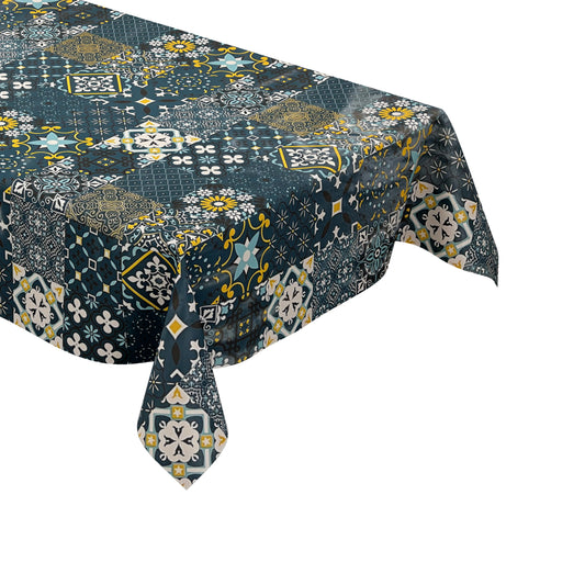 Nappe en toile cirée B5010-04 carreaux de mosaïque pétrole Portugal carré rond ovale