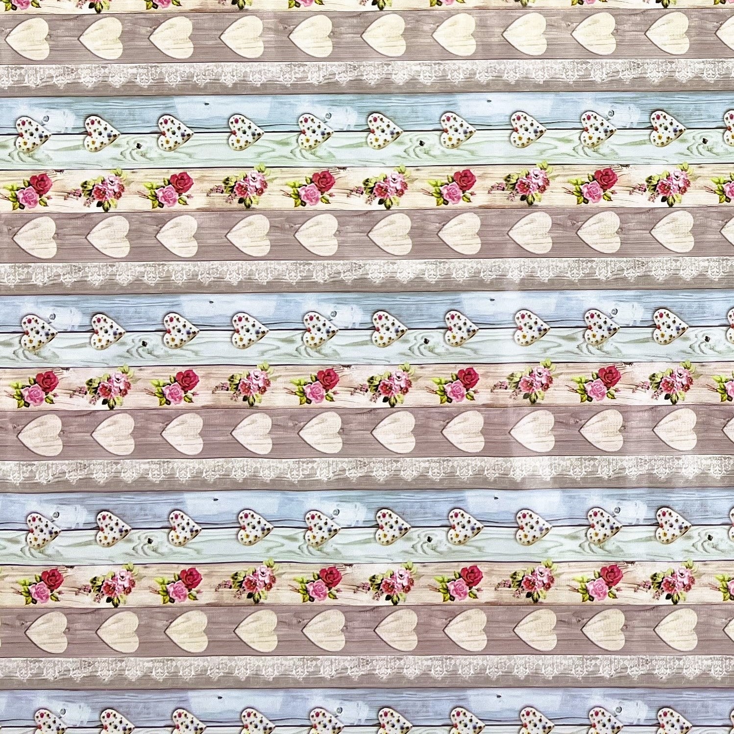 Nappe toile cirée B9066-01 coeurs bois cabane alpine carrée ronde ovale