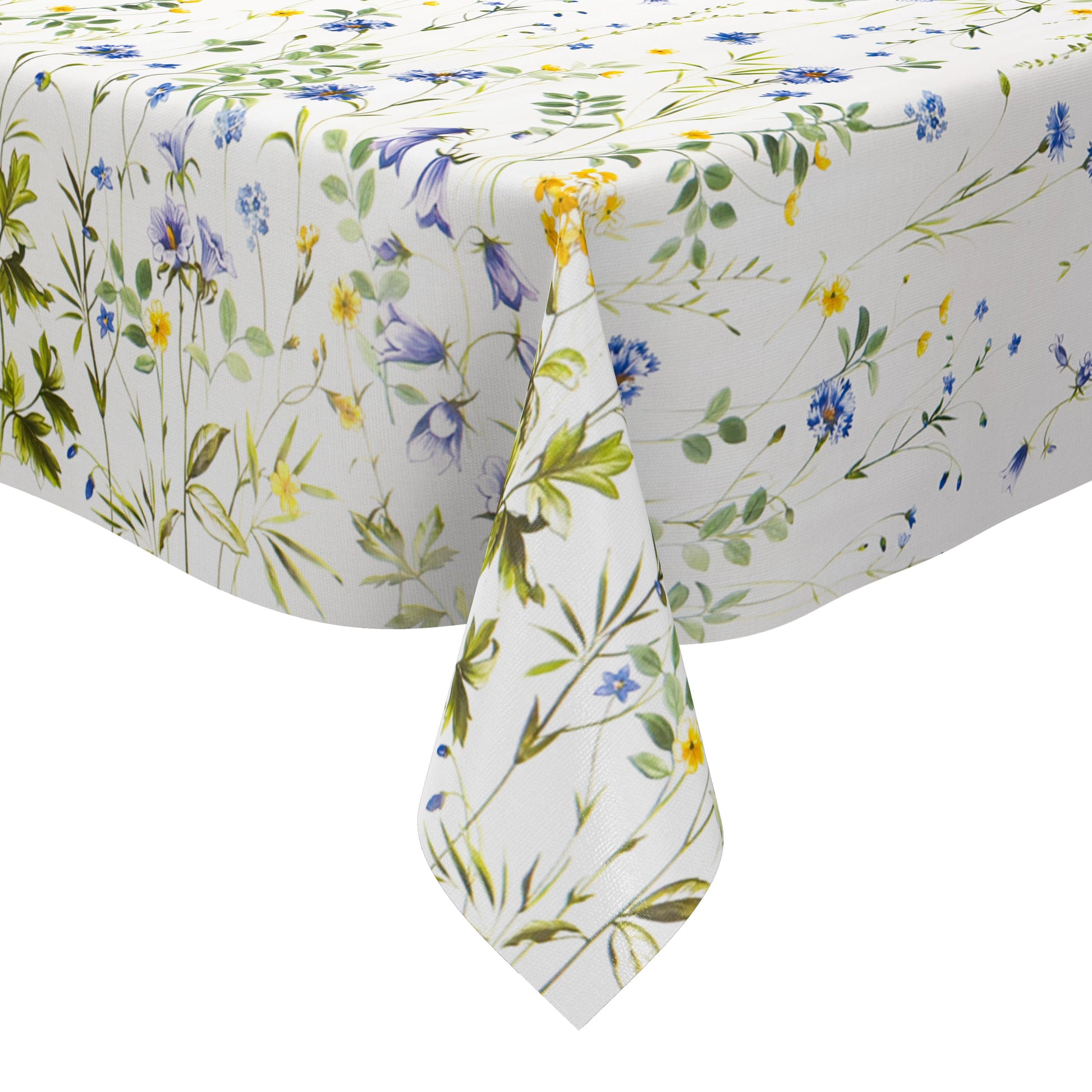 Motiv: Diese Wachstuch-Tischdecke überzeugt mit einem zarten Blumenwiesen-Design auf hellem Hintergrund. Feine blaue und gelbe Blüten sowie grüne Blätter sorgen für eine frische, sommerliche Optik. Die abwischbare, wasserabweisende Oberfläche ist pflegeleicht und langlebig – ideal für Küche, Balkon oder Garten und eine stilvolle, praktische Tischdekoration im Alltag. - Größe frei wählbar und in den Formen eckig, rund und oval erhältlich.