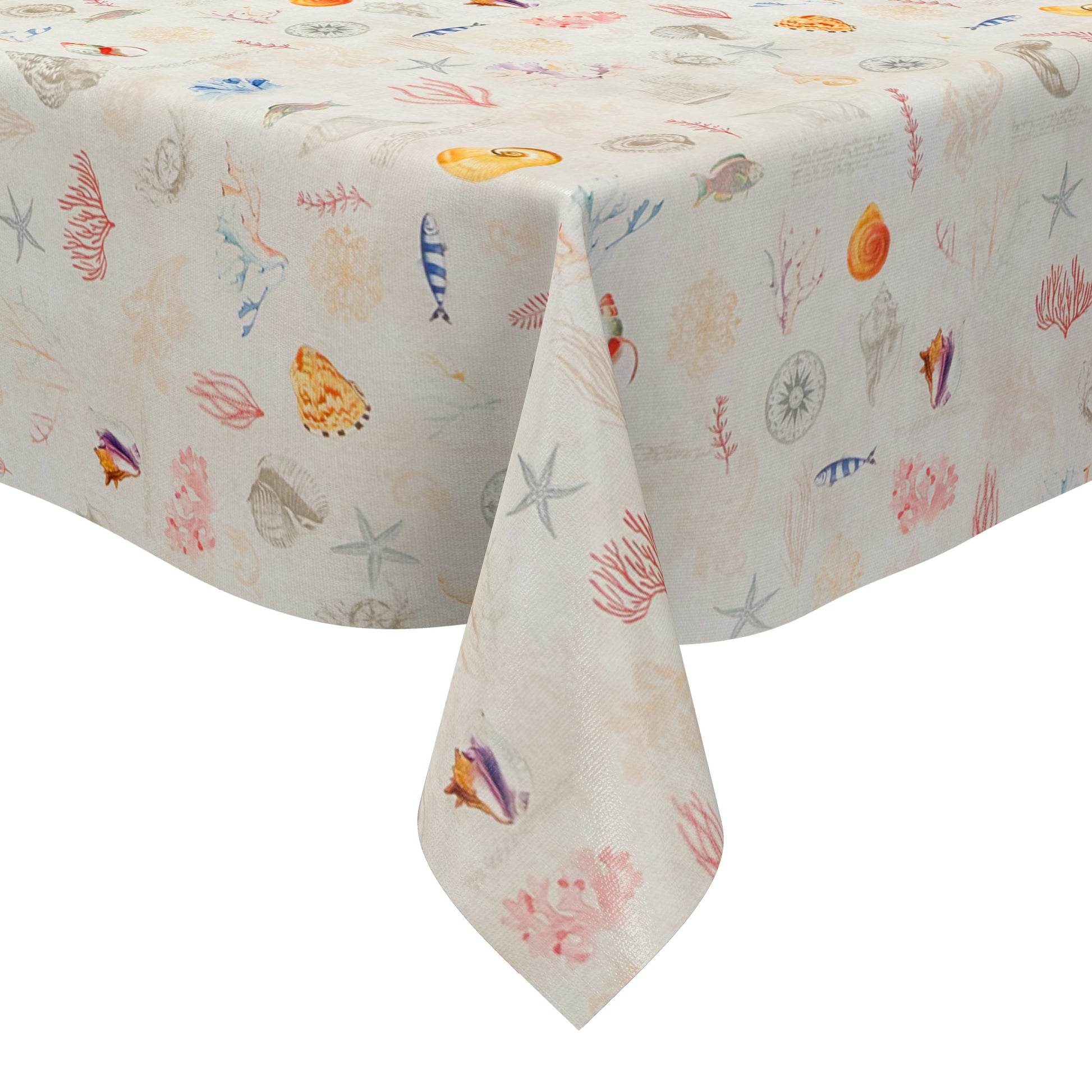 Motiv: maritim, Fische, Korallen, Seesterne, Miuscheln, Schiffe auf beige - Größe frei wählbar und in den Formen eckig, rund und oval erhältlich.